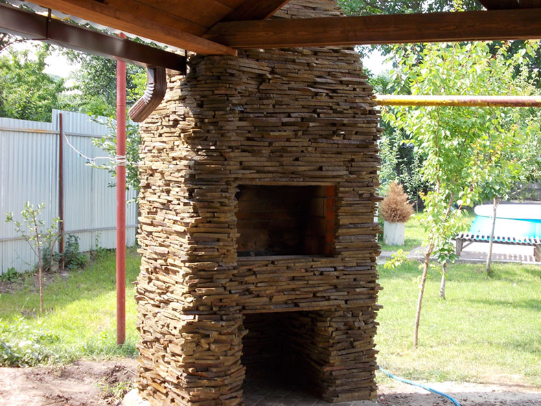 Барбекю из кирпича с открытой топкой, с облицовкой декоративного камня. Сделан на заказа в городе Пролиски, Заказчику обошелся в такую стоимость: