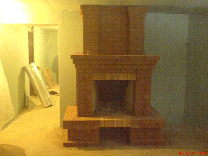 Расширенный камин из кирпича с особой вытяжкой с открытой топкой. Сделан на заказ для частного дома в городе Ворзель, Заказчику обошелся в такую стоимость: